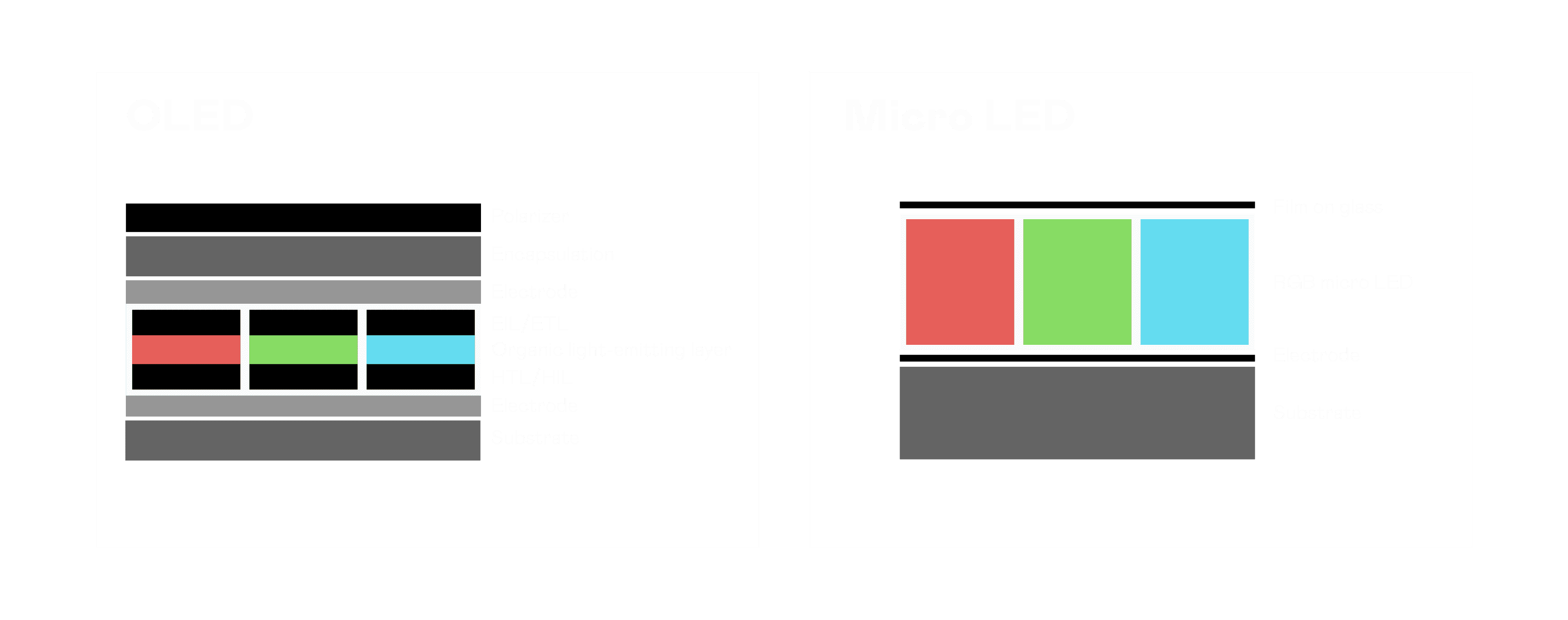 以 LED 做为显示画素,,,,可让 LED 的发光效率发挥到极致,,,从而让显示器具备优异的亮度表现,,不论是在户外或室内,,,,均具备出众的显示效果。。。。同时,,与使用有机材料的 OLED 相比,,LED 具备更稳定、、、寿命更长的特性,,,,不仅不会有画面烙印问题,,而且更不容易出现故障、、坏点。。