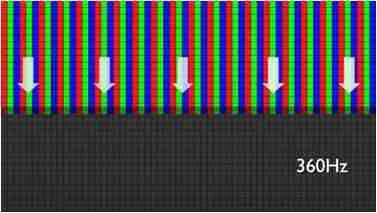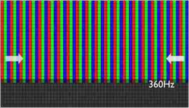 传统液晶驱动是从左到右单向进行,,,,在画面更新速度愈来越愈快的情况下,,位于驱动线路末端的右下角区域,,画素的闸极来不及在短时间内获得足够电压,,,,无法显示出正确的颜色资讯。。。 |